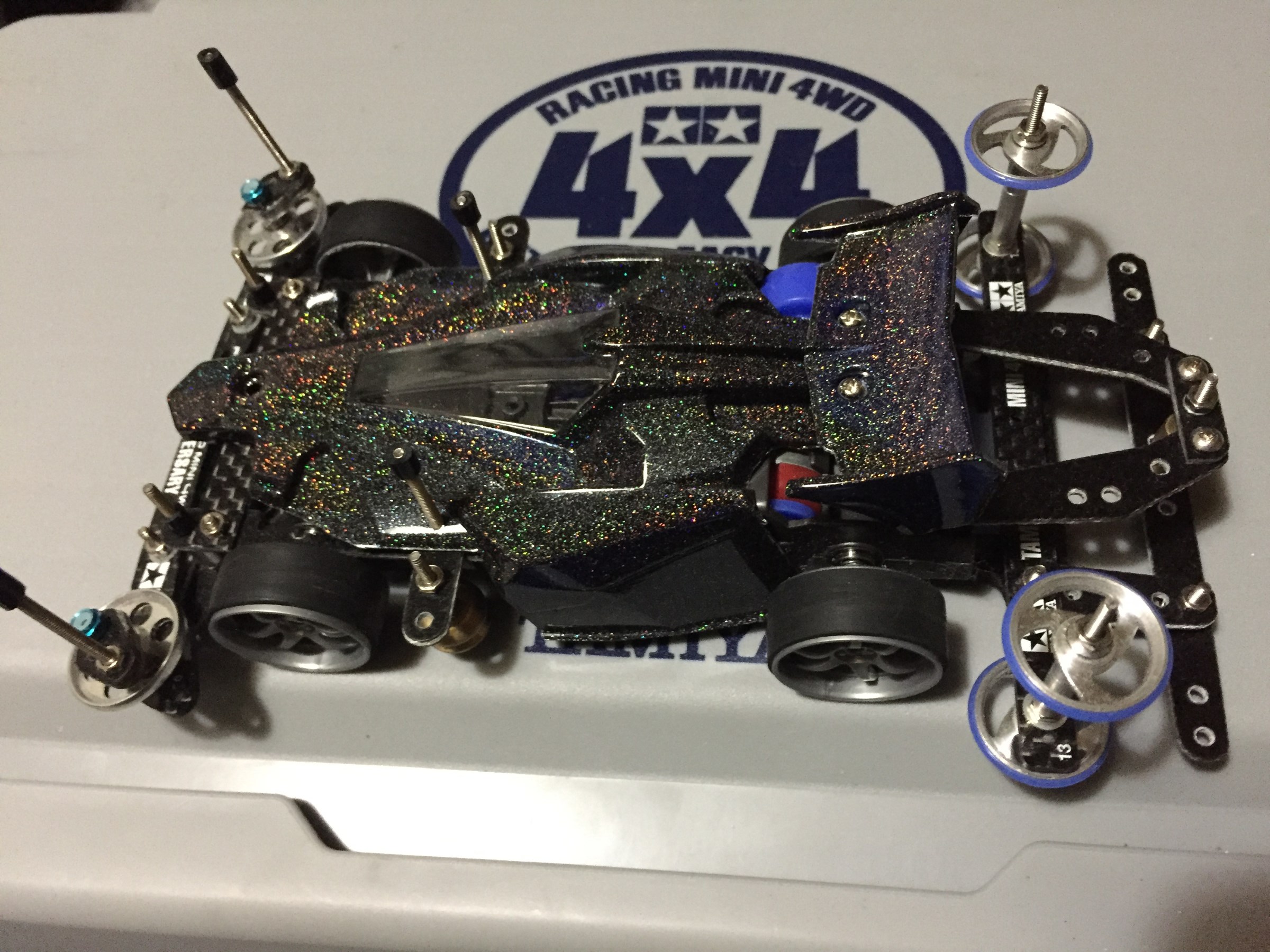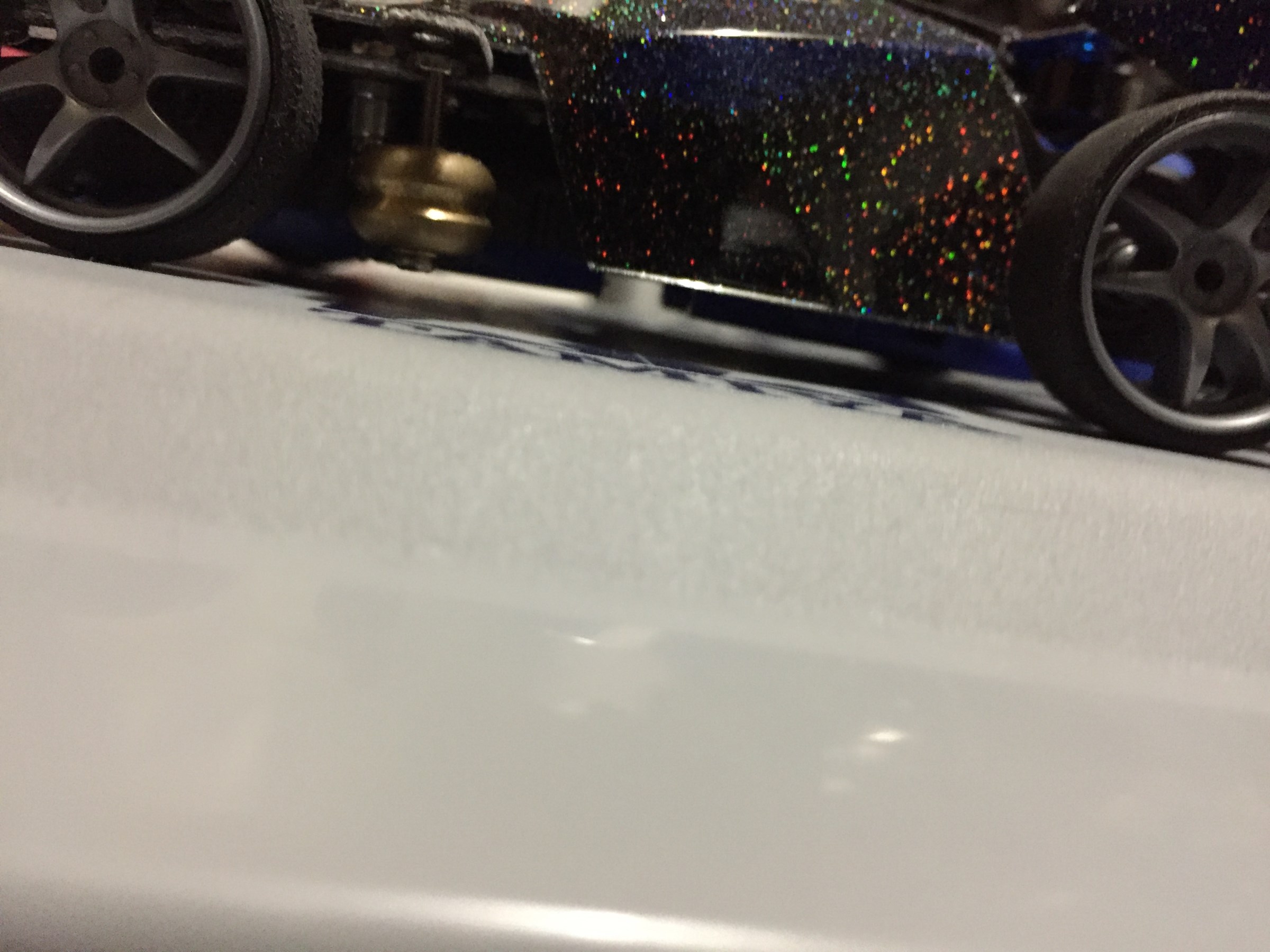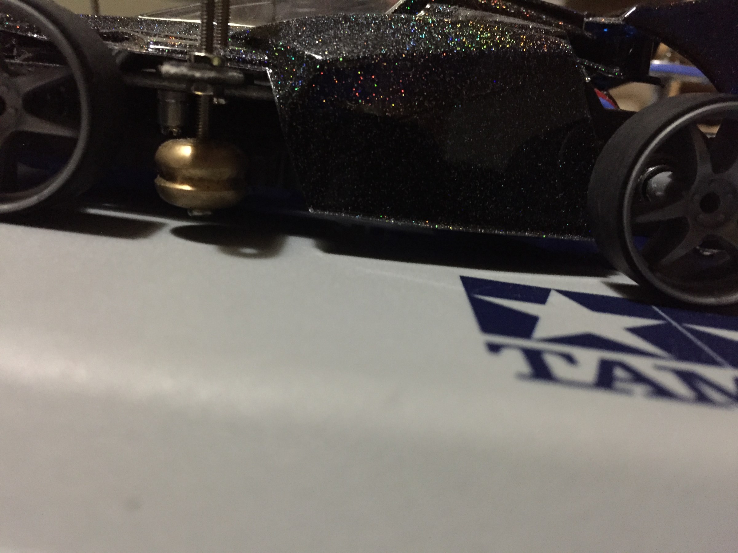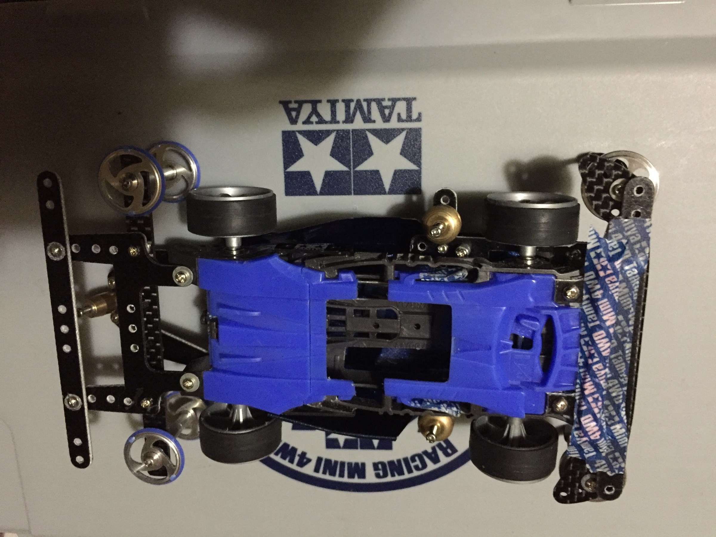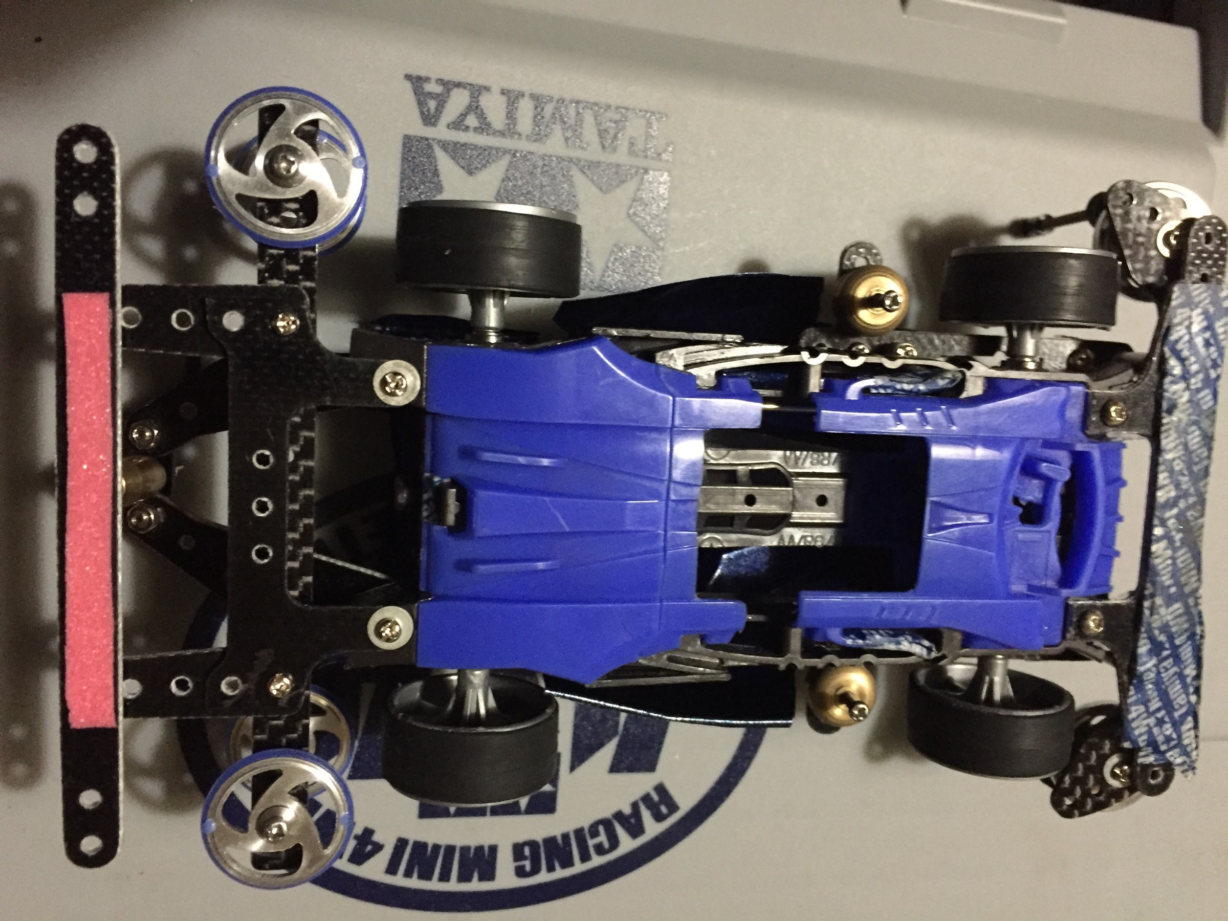 フロントブレーキは試行錯誤で下げていたので、タイヤを他のマシンの時に作ったタイヤで1.5mm車高を上げてリアブレーキは無しで走らせてみたら見事完走!(笑