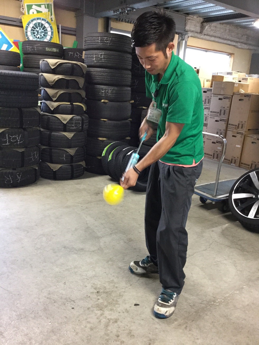 そして社員Yが、もしかしたらワイパーよりも力を入れているかもしれない水ヨーヨー!