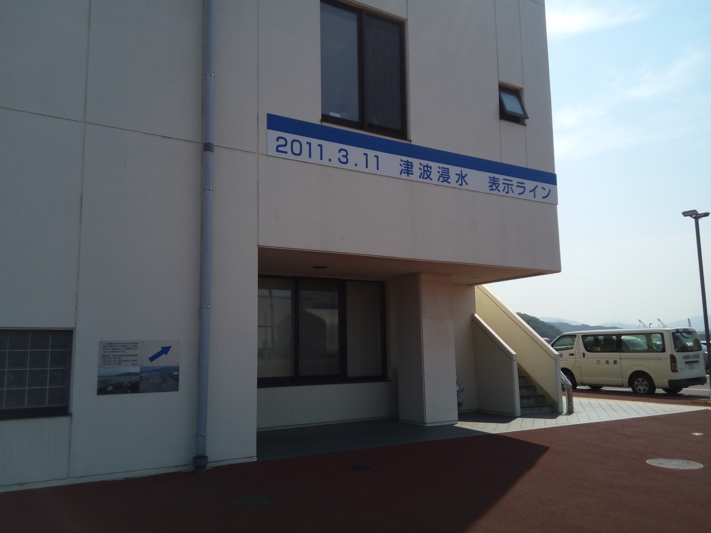 海が近いという事は津波の影響もあったということで、こんな感じでラインが引いてあります。