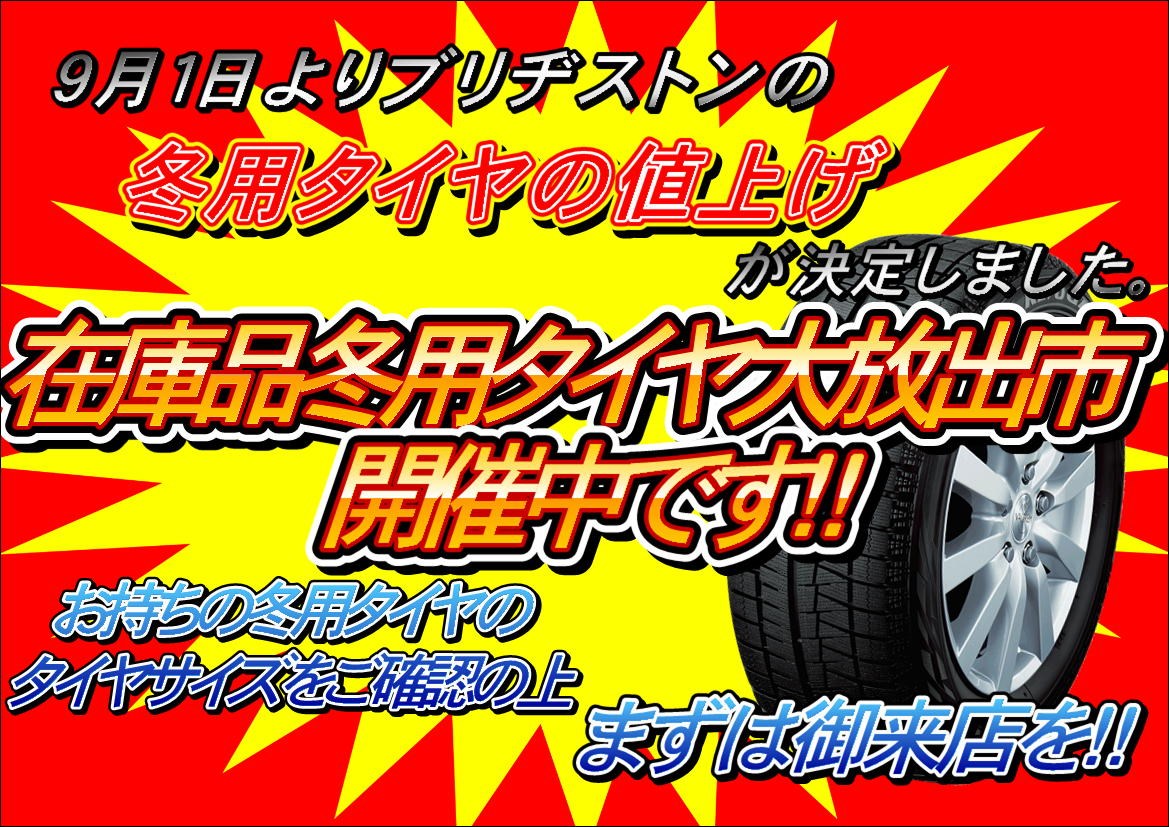 夏タイヤに引き続き冬タイヤも9月1日から値上がりが決定致しました・・・。