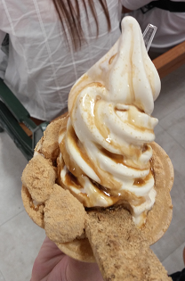 こちらの桔梗屋さんのソフトクリームはなんと信玄餅がトッピングされているんです!