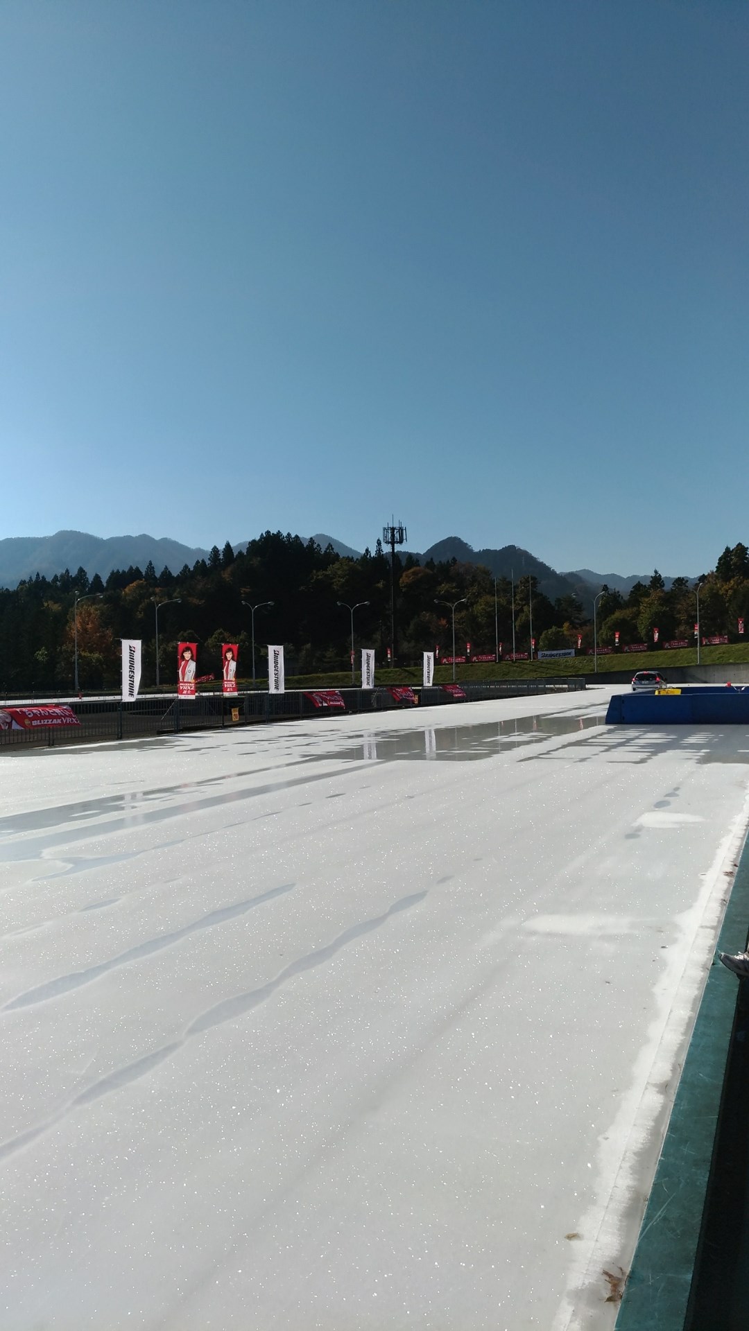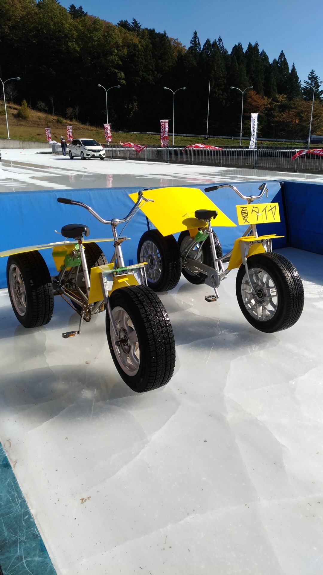 こんなテカテカツルツルのスケートリンク上で試乗しました!