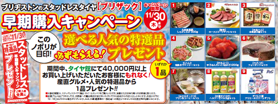 11月のキャンペーン ポスト 2017年11月25日 朝晩の寒さも本格的になってきました。 スタッドレスタイヤへの交換も 連日たくさんのお客様にご来店して頂いております!! 本日を含めて集中得市も残り2日となりました。 土曜日と日曜日も11月は最後のチャンスです!! プレゼントが選べるキャンペーンも残り期間わずかとなりましたので、 お得な11月にご来店下さい。お待ちしております^^ では、また。 担当:店長I