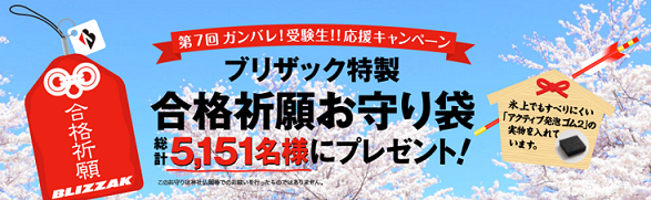 アクティブ発泡ゴム入りのBLIZZAK特製「合格祈願」お守り袋を、抽選でプレゼントいたします。
