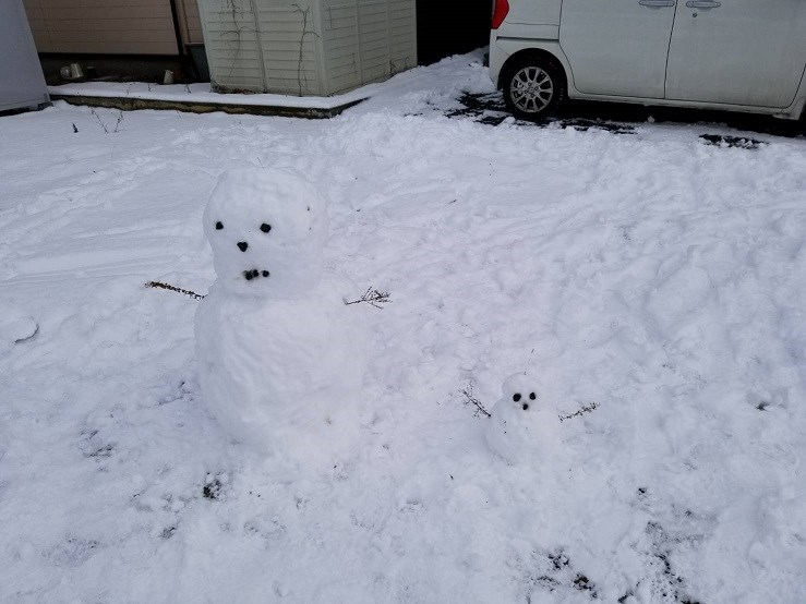 盛岡の妹宅で甥っ子と作った雪だるま。