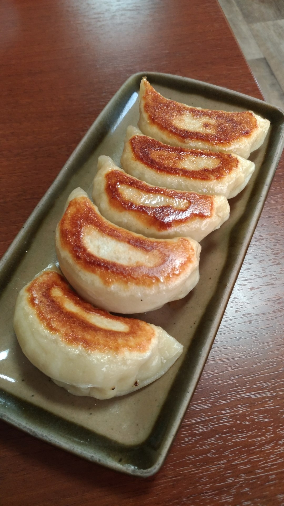 ラーメンとギョーザの食券を買い席について待っているとついにきました!