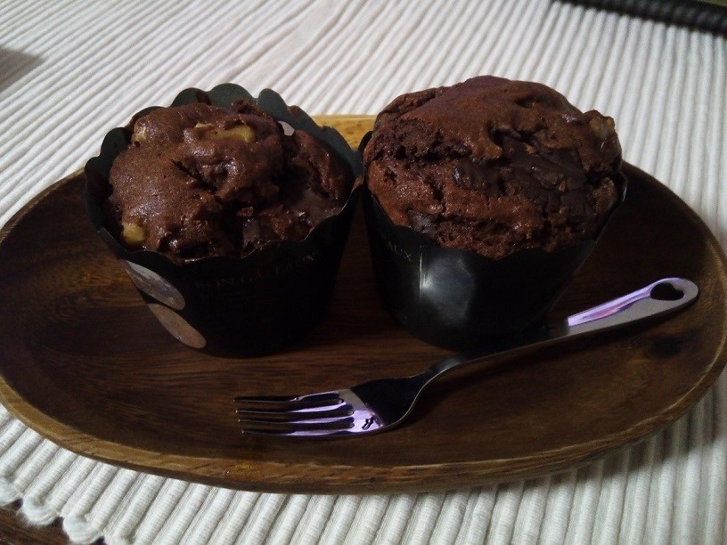 ココア生地に大きめに砕いたビターチョコとクルミを入れてみました。