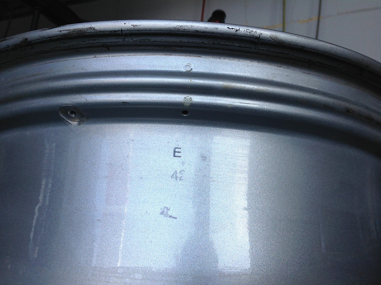 穴がありました。わかりにくいですが、中央のEの刻印の上です。
