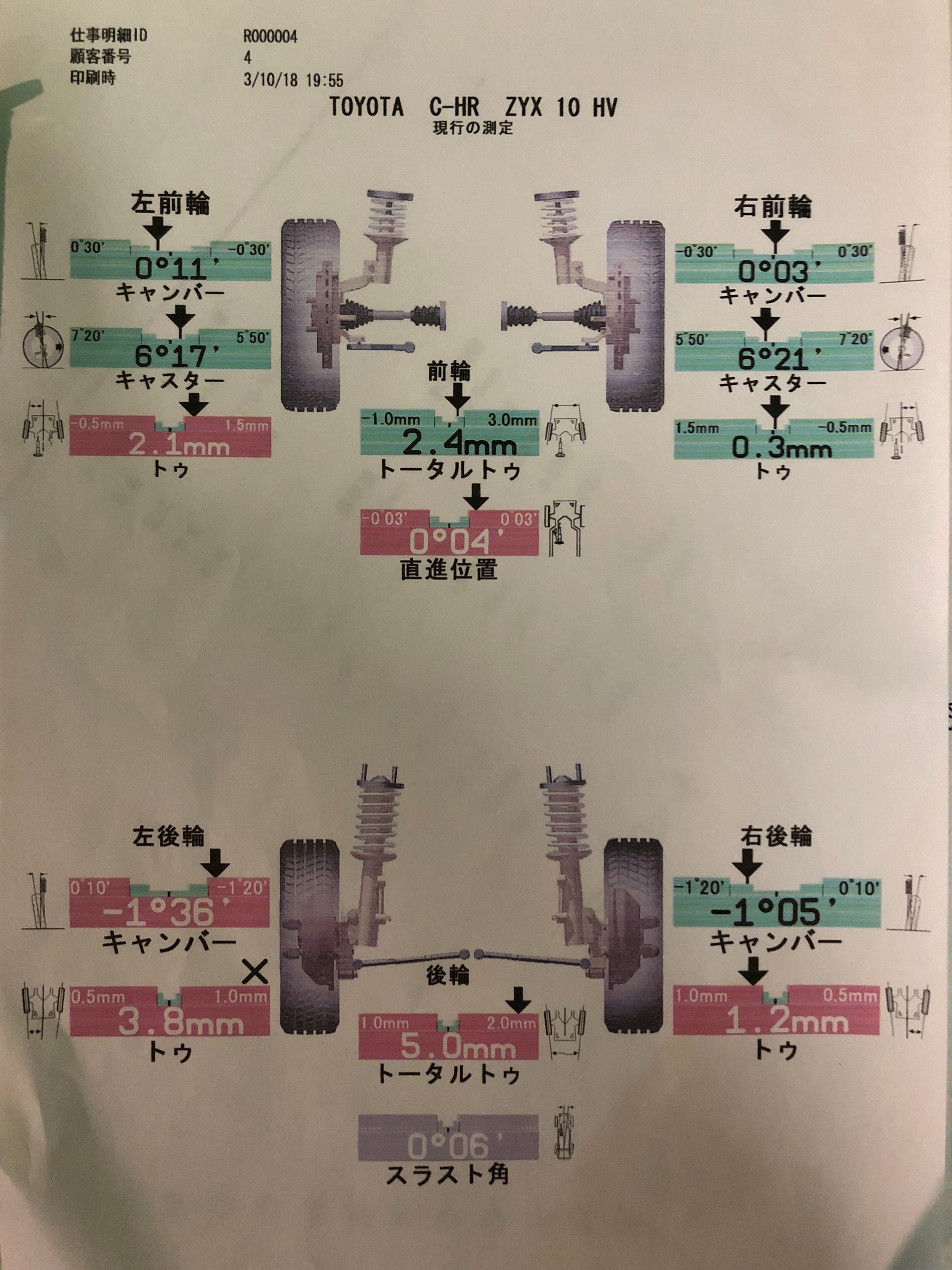 C-HRはフロントとリアのトウの調整ができます。