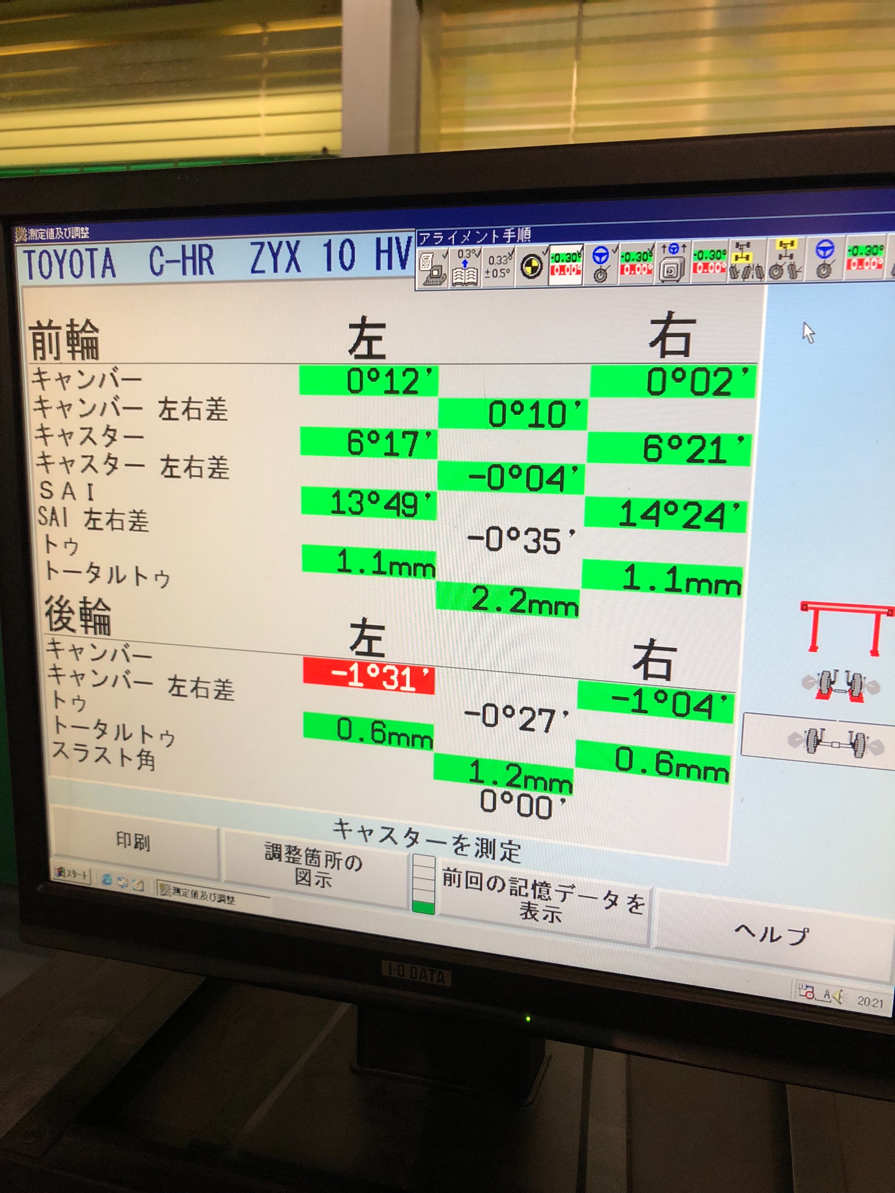 基準値内で左右差無く調整がが出来ました。