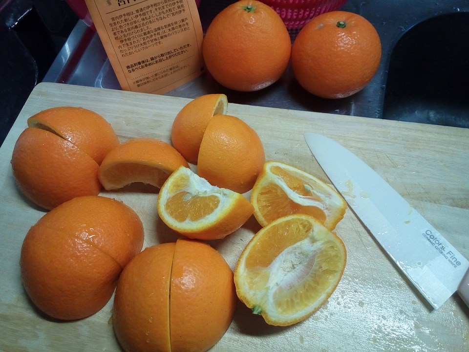 先日お客様からの差し入れで、たくさんの伊予柑をいただきました。