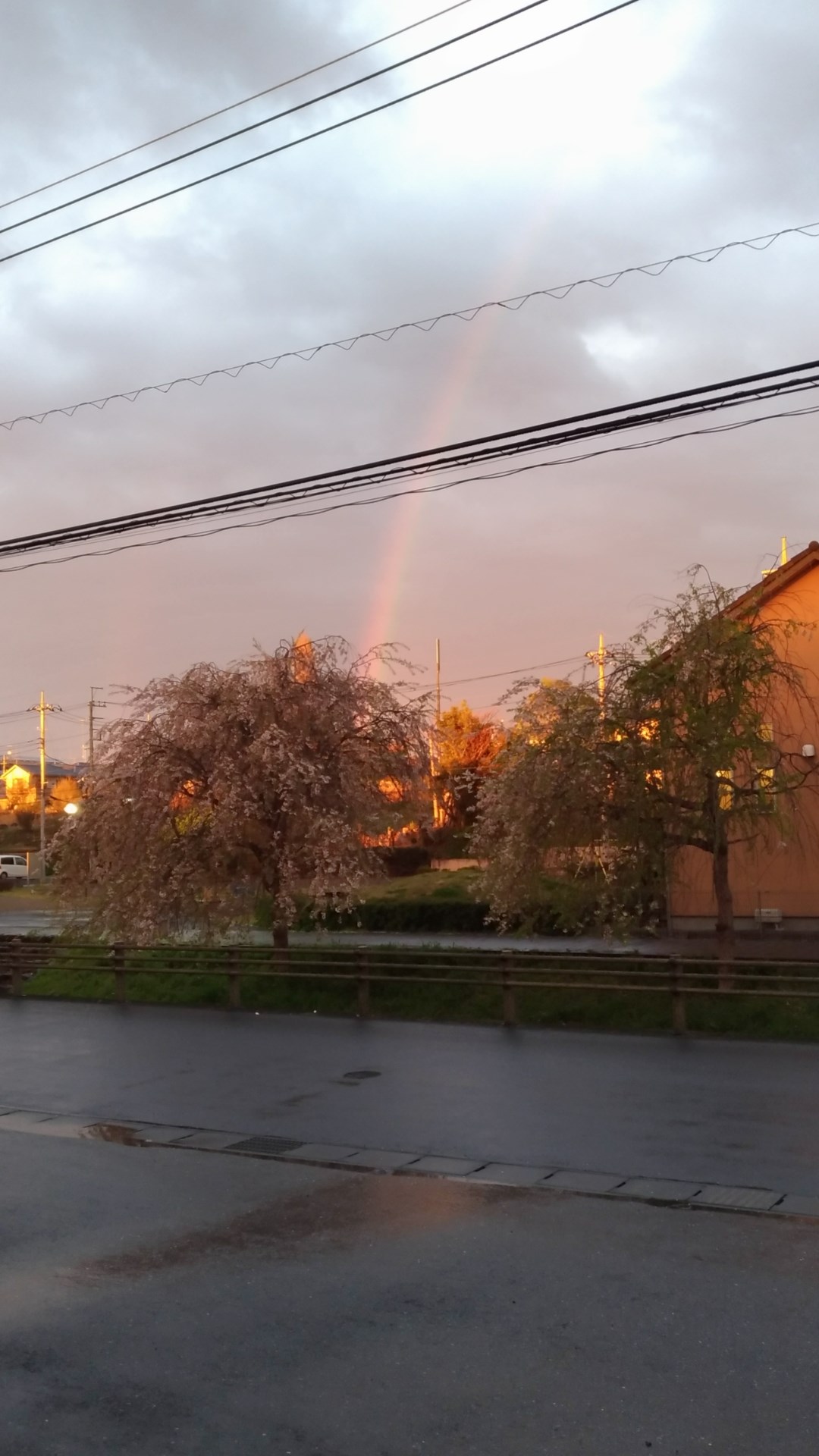 雨上がりに! ポスト 2018年4月11日 こんばちは!社員Yです! 先日は雨のなかでもたくさんのご来店ありがとうございました! 作業が落ち着き休憩をしていると、 虹が出ていました!思わずテンションが上がり撮影しちゃいました! 結構広範囲に出ていたのですが写真がわかりづらくてすみません。笑 とりあえず綺麗でした!笑 話しは変わりますが4月の履き替えまだまだ沢山のご来店お待ちしております! 担当:社員Y