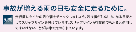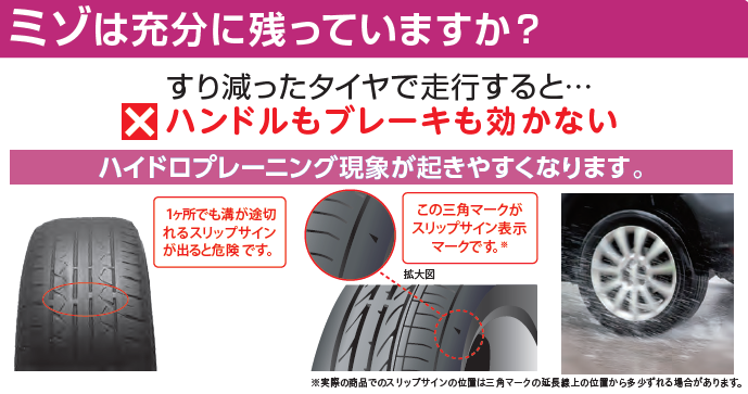 ミゾが減っているタイヤはさらにこんな危険性も・・・