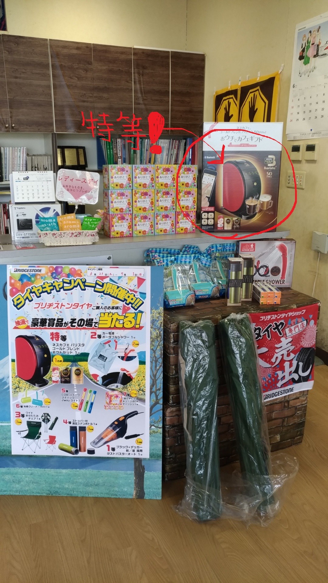 集中得市 残り2日!! ポスト 2018年6月30日 社員Yです! さぁ!6月の23日(土)から開催している集中得市も本日を入れて残り2日となりました! まだまだタイヤ、メンテナンス用品をお得に購入出来るチャンスが2日も残ってます! さらにこちら!! ブリヂストンタイヤ4本ご購入のお客様に抽選で当たる特等も残ってます!! さらに引き続きワイパー、ドライブレコーダーのキャンペーンも実施しております!! 残り2日となりましたがまだまだ沢山のお客様のご来店お待ちしております! 担当:社員Y