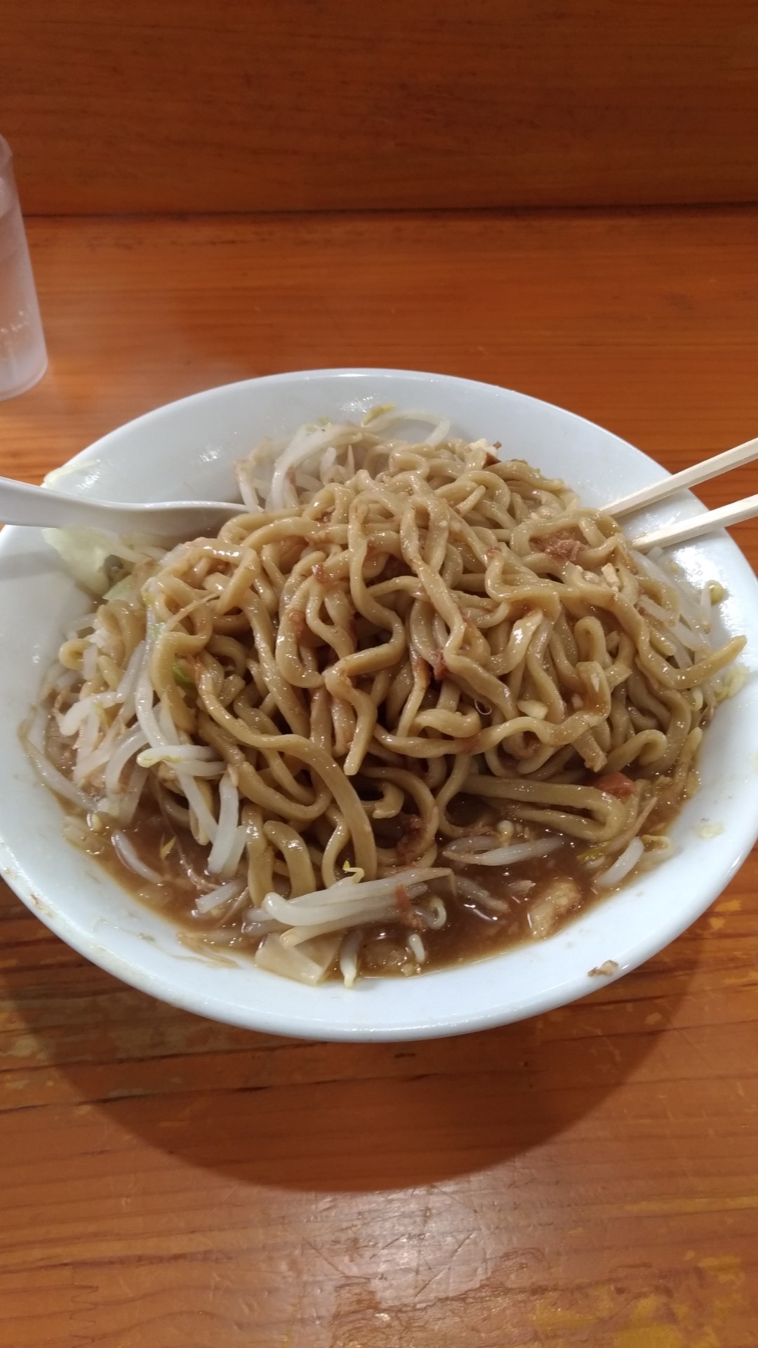 野菜少なめ、ニンニク増し、アブラ増しの400gを頂きました!!