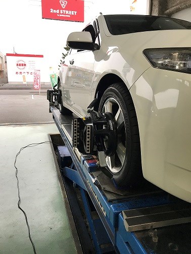 今まで履いてたタイヤに片減りが見られたのでアライメントの測定と調整の方をオススメさせていただきました。