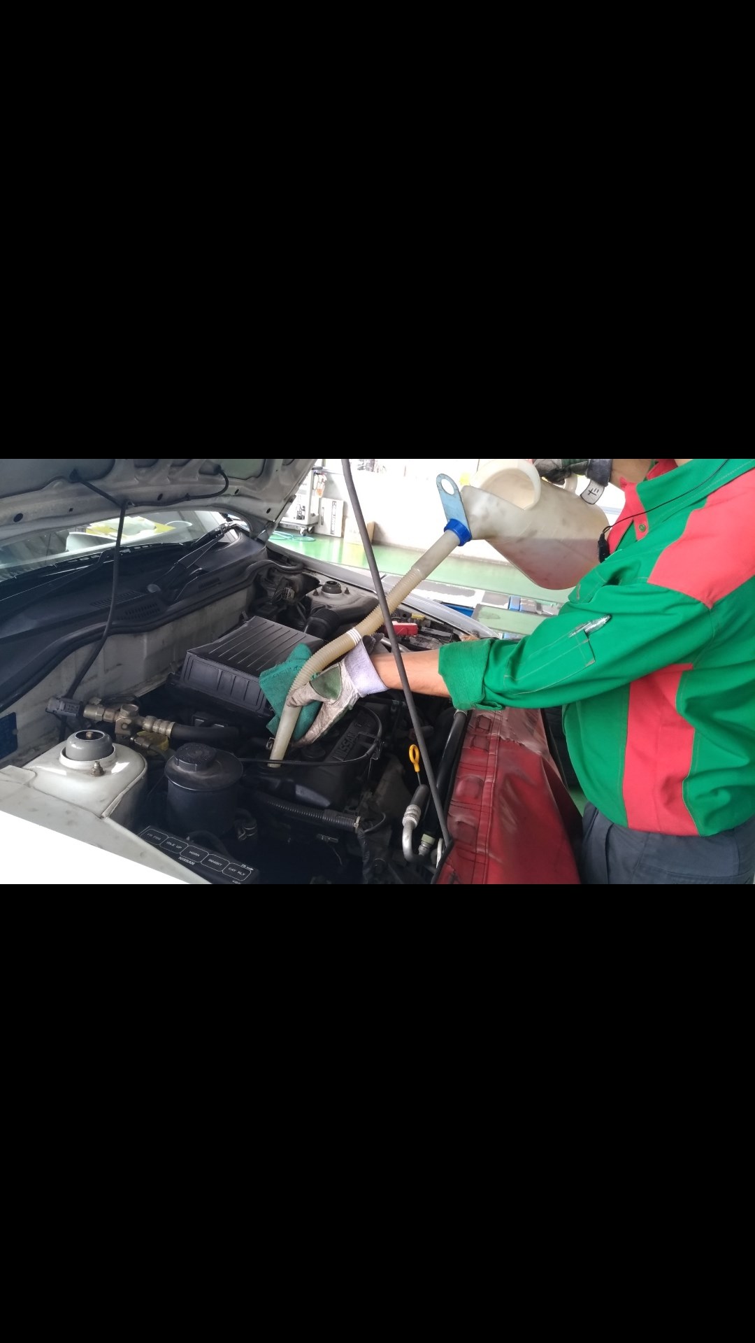 車を下げてオイルを入れます。