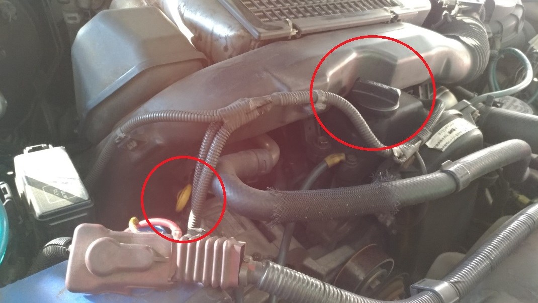 ボンネットを開けていつも通りこちらの2箇所を緩めます。