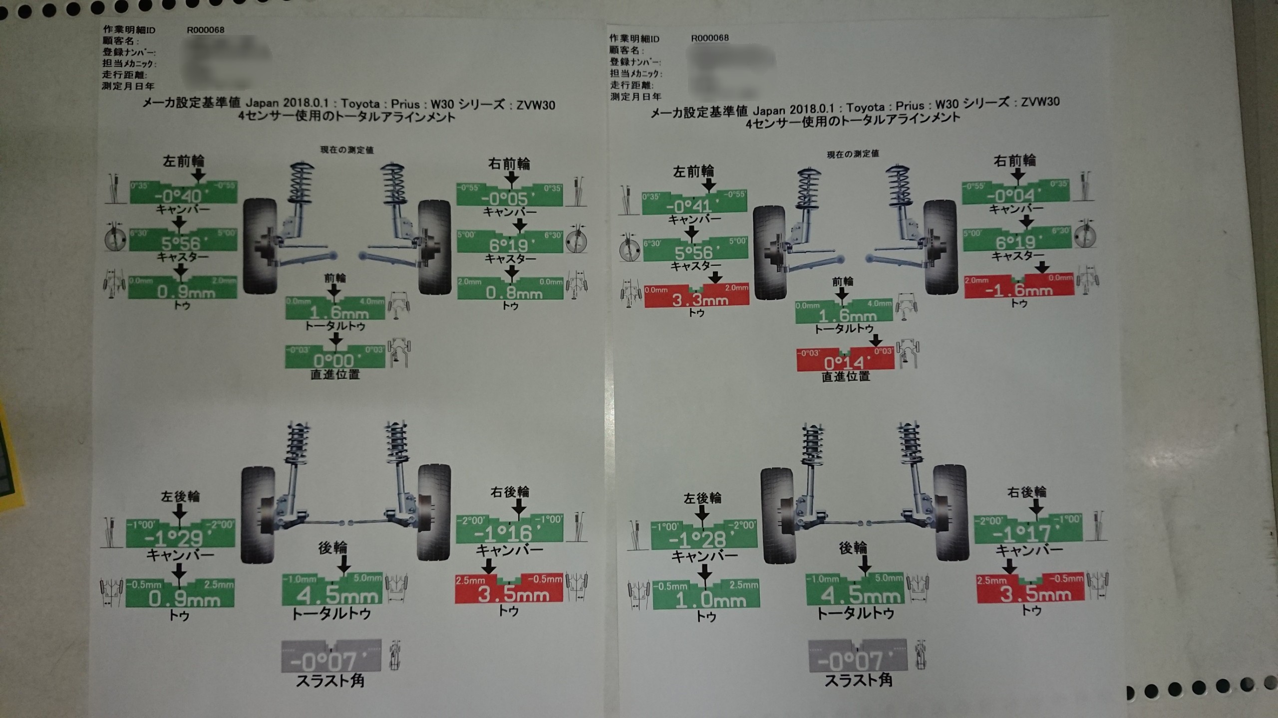 フロントトゥを調整。ずれた数値を基準値に合わせます。