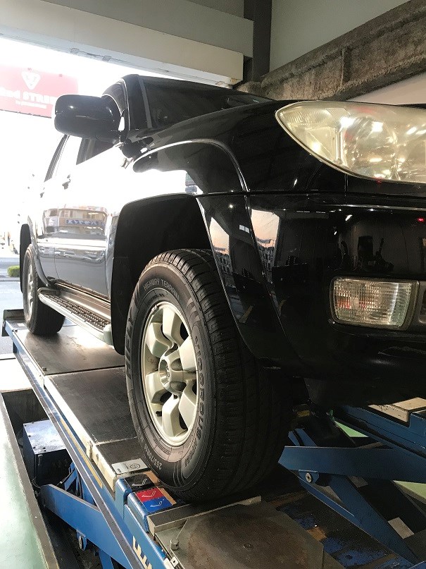 今日はハイラックスサーフのアライメント調整の紹介をしたいと思います。