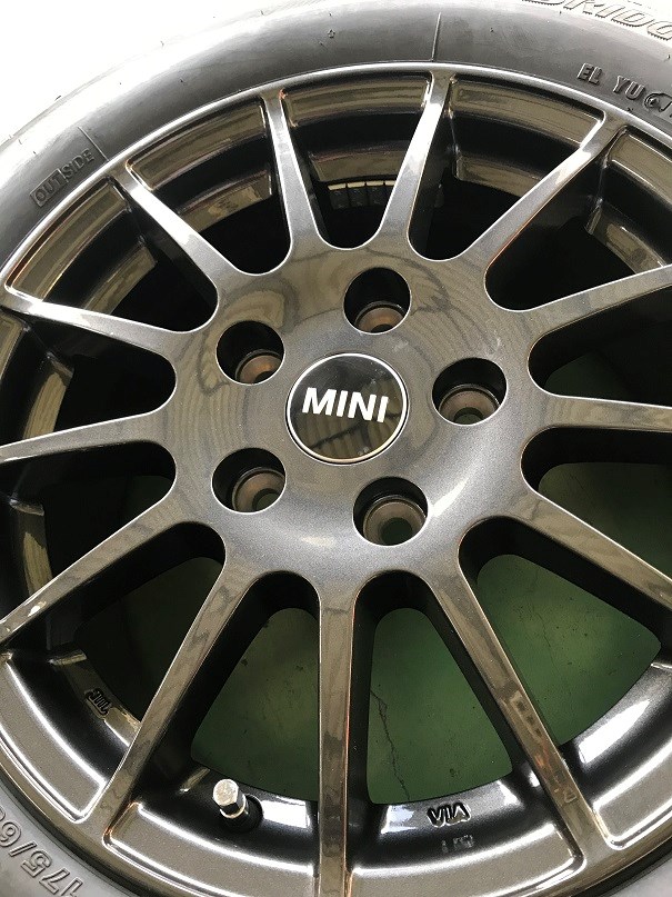 今回のミニクーパーは純正センターキャップが使えましたのでこのような感じになりました。