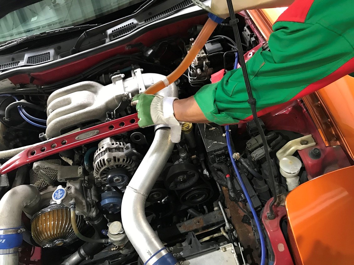 古いオイルが抜き終わり、新しいオイルを入れていきます!