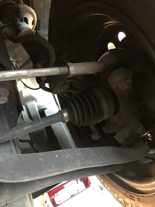ナットを緩めて車体に伸びてるタイロッドを動かして調整していきます。