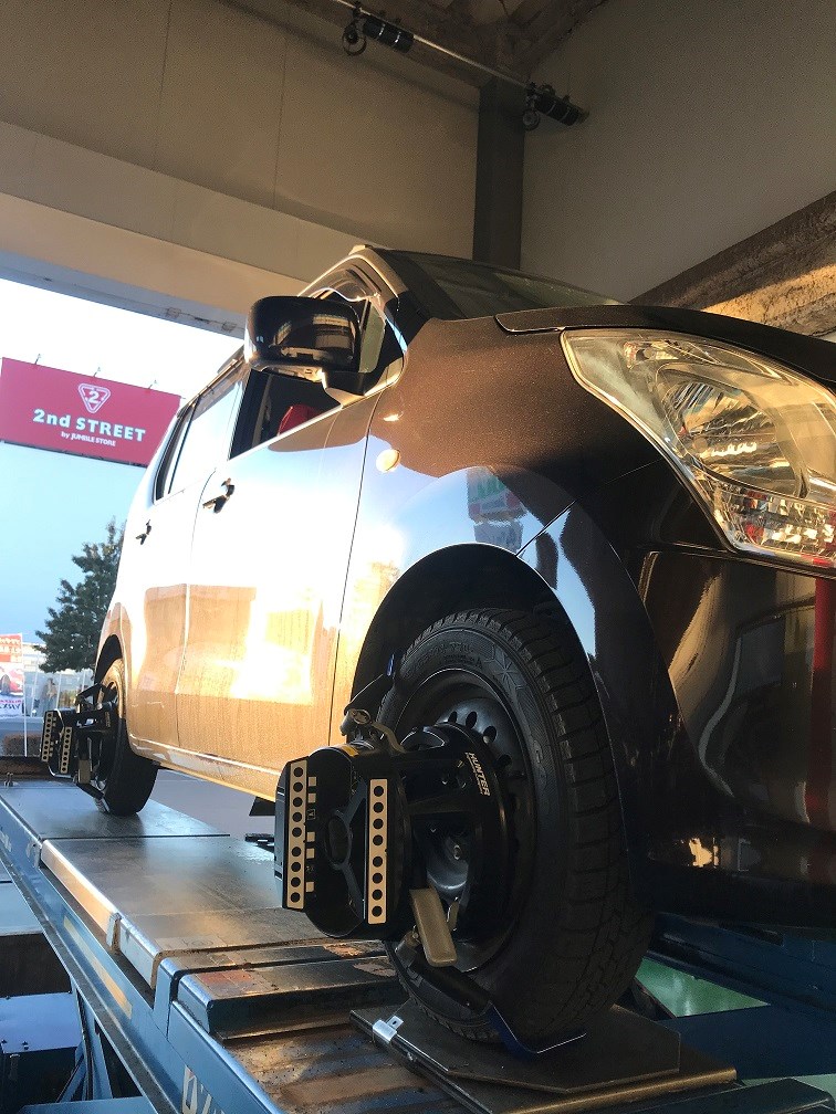 今回はスズキ ワゴンR(MH34S)のアライメント調整の紹介をさせていただきます。