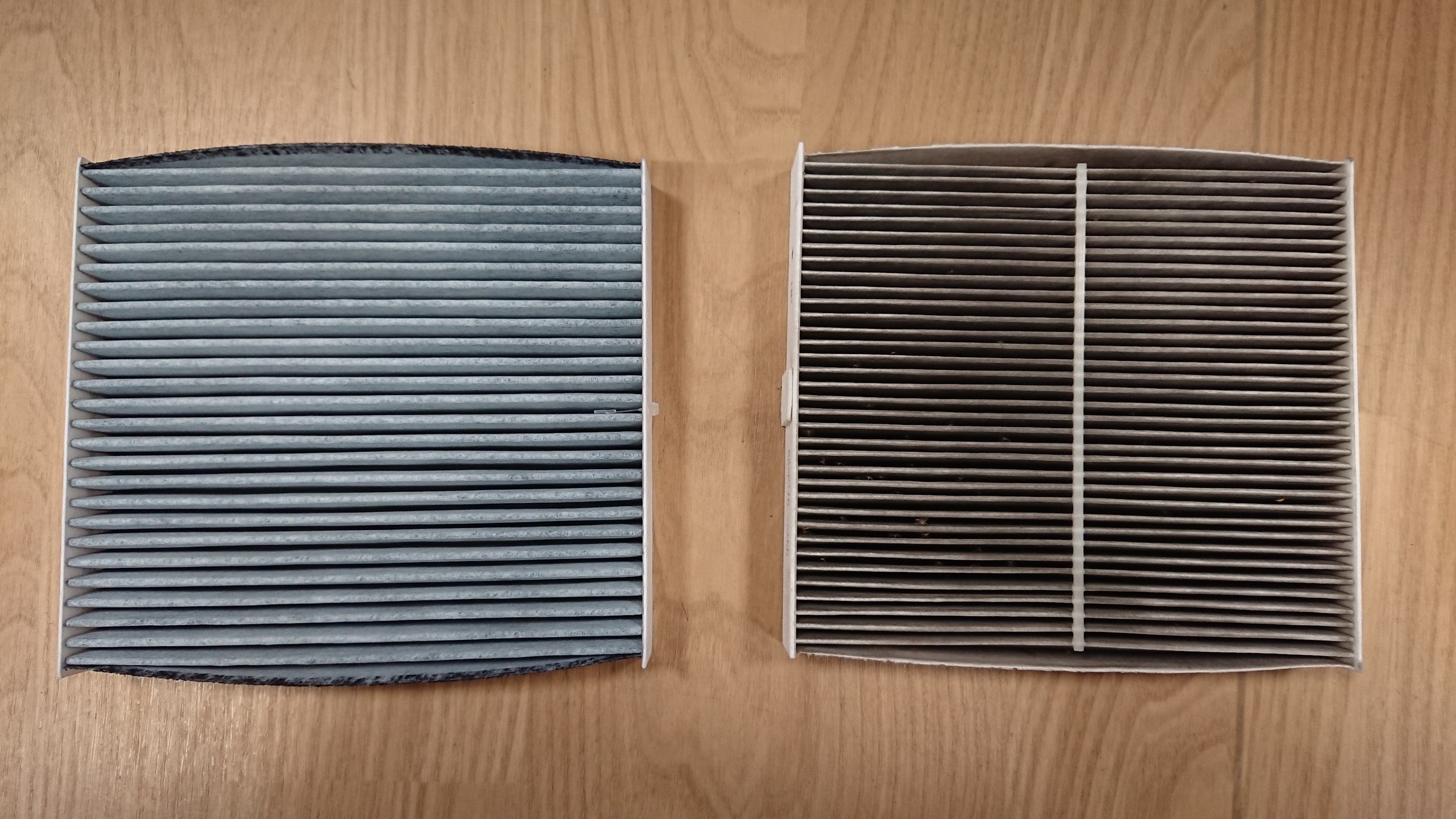 右側が 約10,000㎞ 走行時のエアコンフィルター。