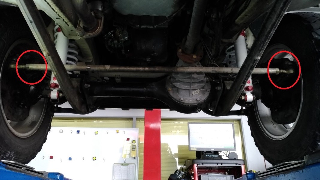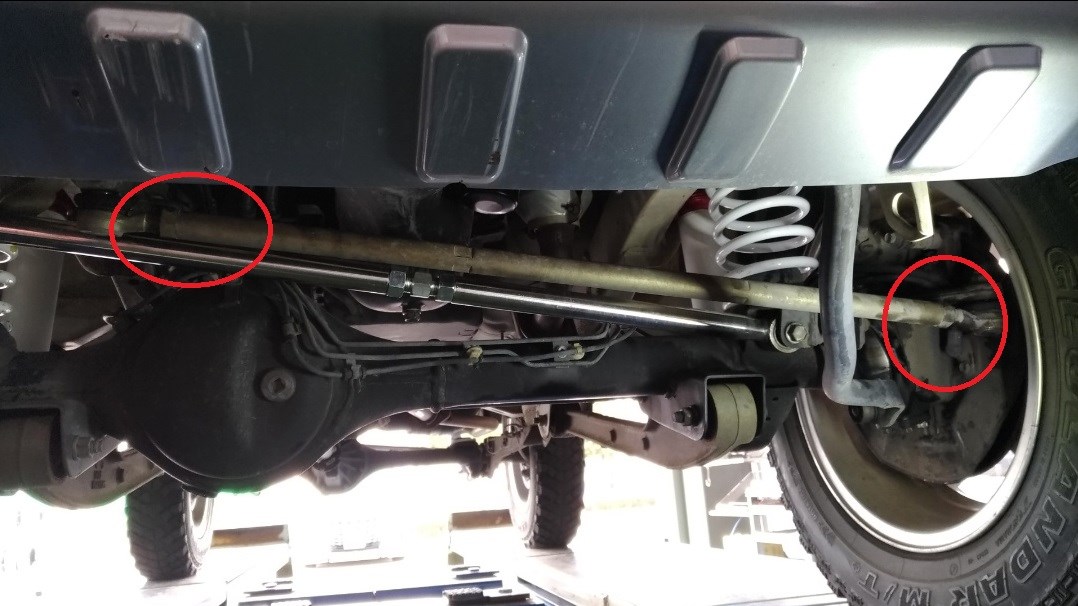 コチラのジムニーの調整箇所はフロントのトーのみの調整になります。