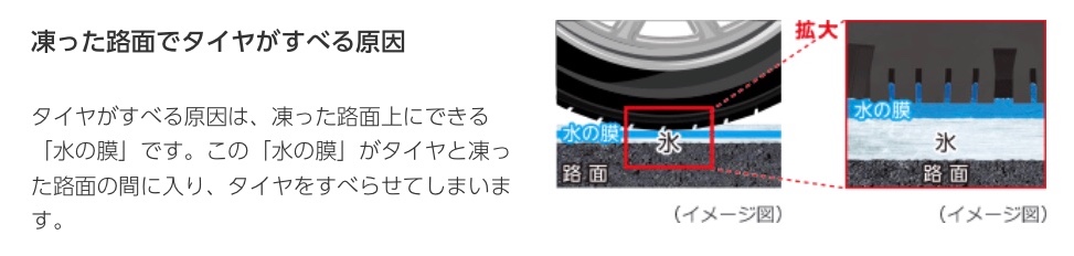 氷や雪の上には水の膜が出来ています! この水の膜を除去できないために滑ってしまうんです!