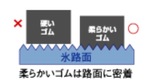 スタッドレスタイヤは夏タイヤに比べてタイヤが柔らかいです!
