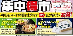 こんにちは! 星です! 3/12(土)から開催されております集中得市! 沢山のお客様にご来店いただき誠にありがとうございました。 平日も集中得市やってます!(火曜日定休日) 集中得市は3/21(月)まで続きます!