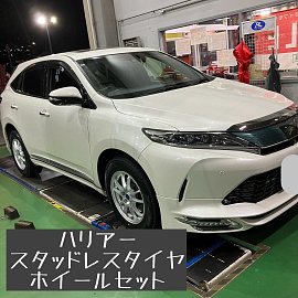 こんにちは♪ 60系ハリアーのスタッドレスタイヤと ホイールのセット装着をご紹介です。 装着タイヤ ブリザック「VRX3」 225/65R17 装着ホイール エコフォルムSE10 トヨタ専用ハブ、平座ナットタイプ ※こちらのホイールは販売を終了しております SUVは「DM-V3」というイメージがありますが、深雪や悪...