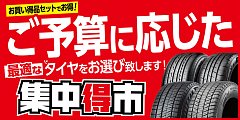 11月14日(土)から23日(月)まで開催! スタッドレスも夏タイヤもお得に購入できる 「集中得市」がやってきました! 期間中ブリザックを、4本買い上げ¥40,000(税込) 以上ご購入で装着またはお持ち帰りの方に限り 抽選で500名※の方に「選べるとちぎの特選品」を抽選でプレゼント! ※開催店舗の...
