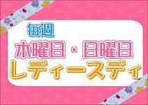 毎週木曜日と日曜日はレディースデイ♪ ★特典その①新品タイヤ購入時の工賃が・・・半額! (夏タイヤから冬タイヤへの脱着履き替えは対象外です。) ★特典その②メンテナンス用品が店頭表示から20%オフ! エンジンオイル・バッテリー・ワイパーなどなど もちろん点検は無料です! ※特価品は対象外で...