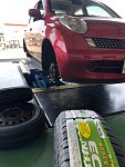 今回は、【日産 マーチ】のタイヤ交換です! タイヤは エコピアNH100C 165/70R14 であります。 低燃費で長持ち!そして雨に強い!☔️ 新車装着タイヤに近い性能なんです! さて まずは、こちらをご覧あれ。 えー、なんだかよくわかりませんね! 少し、引いてみましょう。 お?コレは…。 はい、タイヤ...