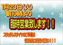 1月23日(火)臨時営業致します!!!