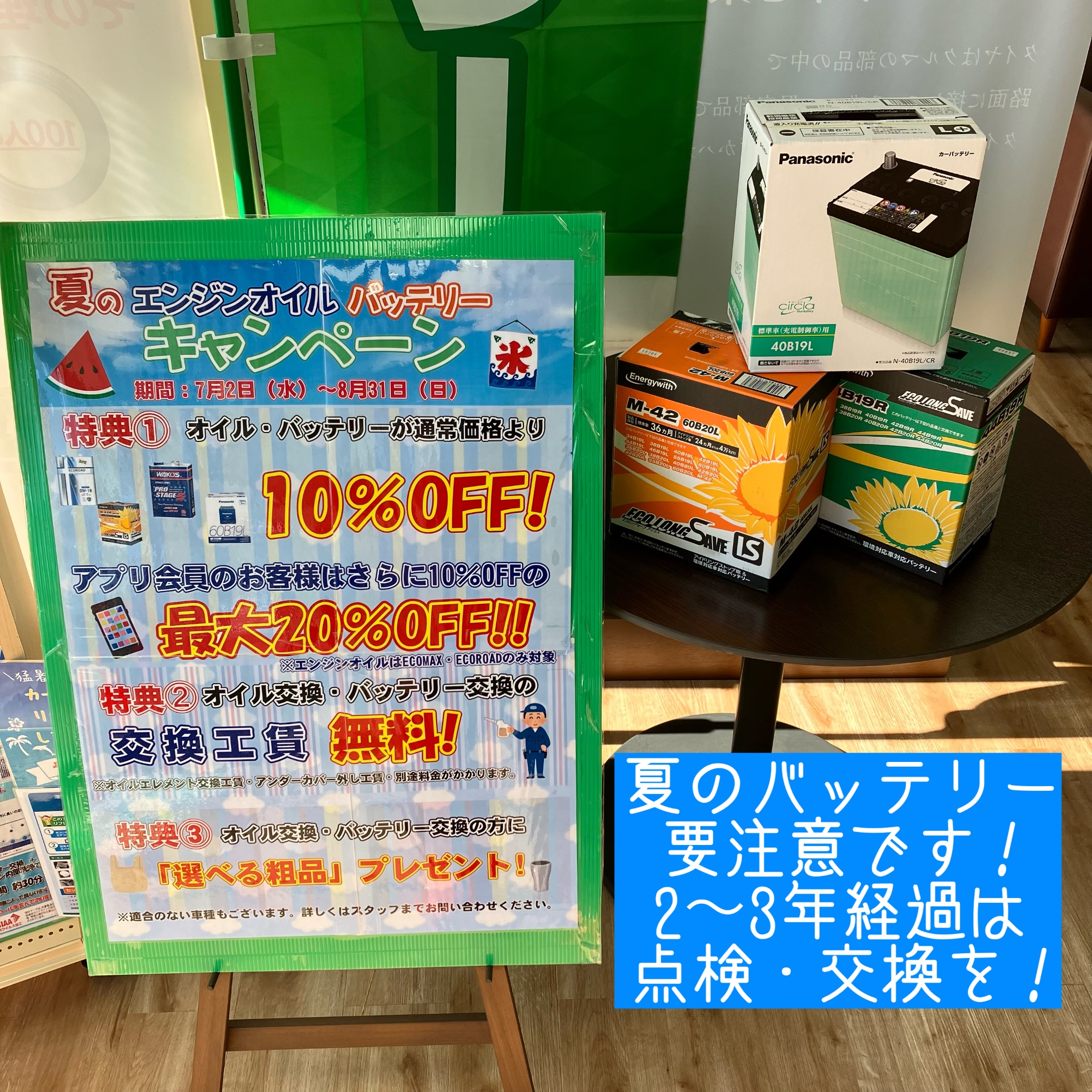 夏のエンジンオイル、バッテリーキャンペーン開催中