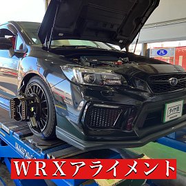 こんにちは。 今回はWRXのアライメント作業を ご紹介します! こちらは足回りの仕様変更にともない、 アライメントご依頼いただきました。 前輪、後輪それぞれ「トー」を 調整して作業完了です。 ハンドル位置が気になる、 まっすぐ走らない、 極端な減り方をしているタイヤがある、 足回りの仕...