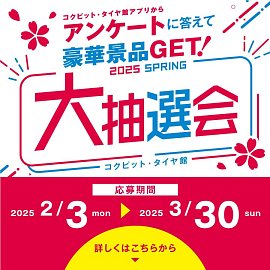皆様こんにちは!!! 今月2月22日の猫の日が楽しみなきゃめいです。 新春セールは終了しちゃいましたが明日からまた新たにイベントがスタートします☆ 2025 春の大抽選会 コクピット・タイヤ館アプリからアンケートに答えて豪華賞品GET! 応募期間 2025年2月3日(月)から2025年3月30日(日)まで 当選...
