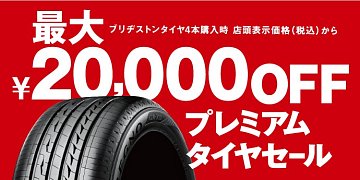 ブリヂストンタイヤをお得に買える!プレミアムタイヤセール開催中!!