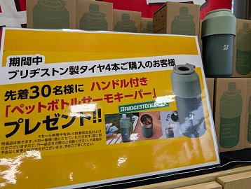 こんにちは! 本日から集中得市が始まります! 期間は、7/13(土)~8/9(金) 期間中、ブリヂストン製タイヤ4本ご購入のお客様 先着30名様に ハンドル付き「ペットボトルサーモキーパー」をプレゼント!! さらに、REGNOシリーズ4本セットご購入で、全店合計先着100名様に レグノオリジナル「ポロ...