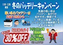 毎年この季節に気になるバッテリーあがり。 段々と気温も下がり、朝一発目の エンジン始動・・・?掛からない?・・・? こんなヒヤッとする経験ありませんか。 その症状、バッテリーが性能低下しているかも。 バッテリーは車の電気に関わる大事なもの。 2~3年以上経過しているバッテリーは要注...