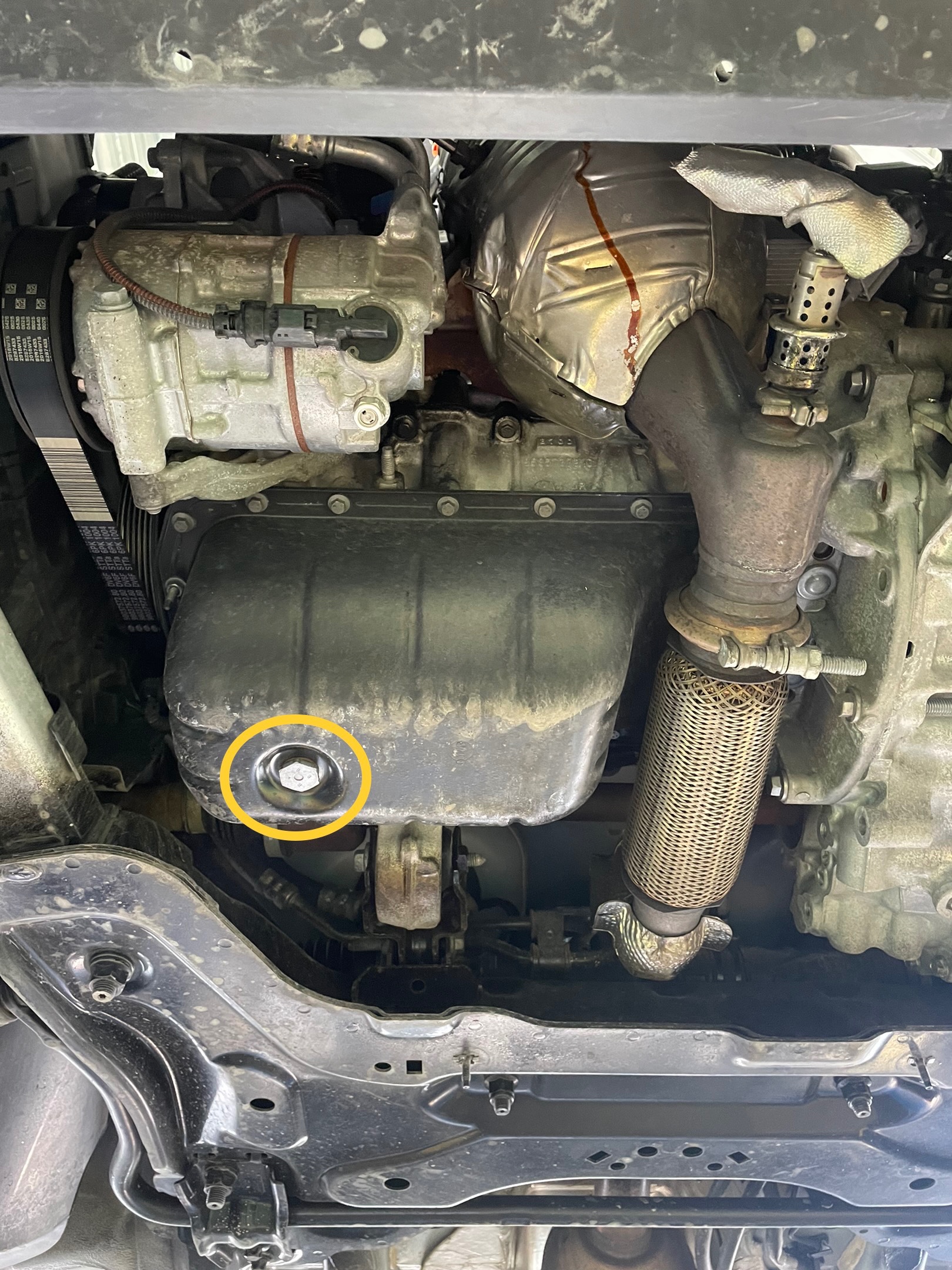 オイルを抜くためにアンダーカバーを外し黄色い丸のところの