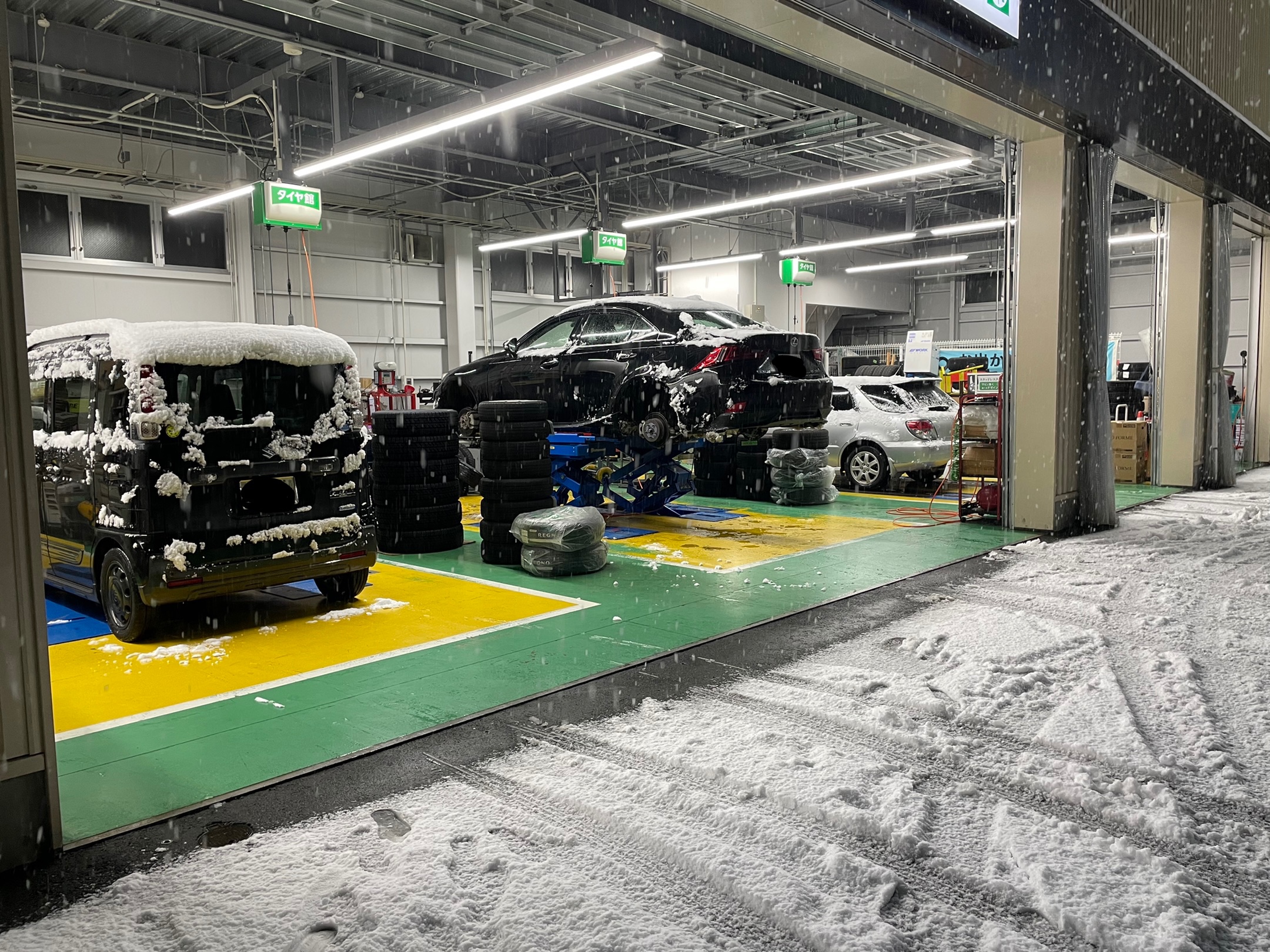 タイヤ交換も駆け込みなどがあり今日のピットも満車です。