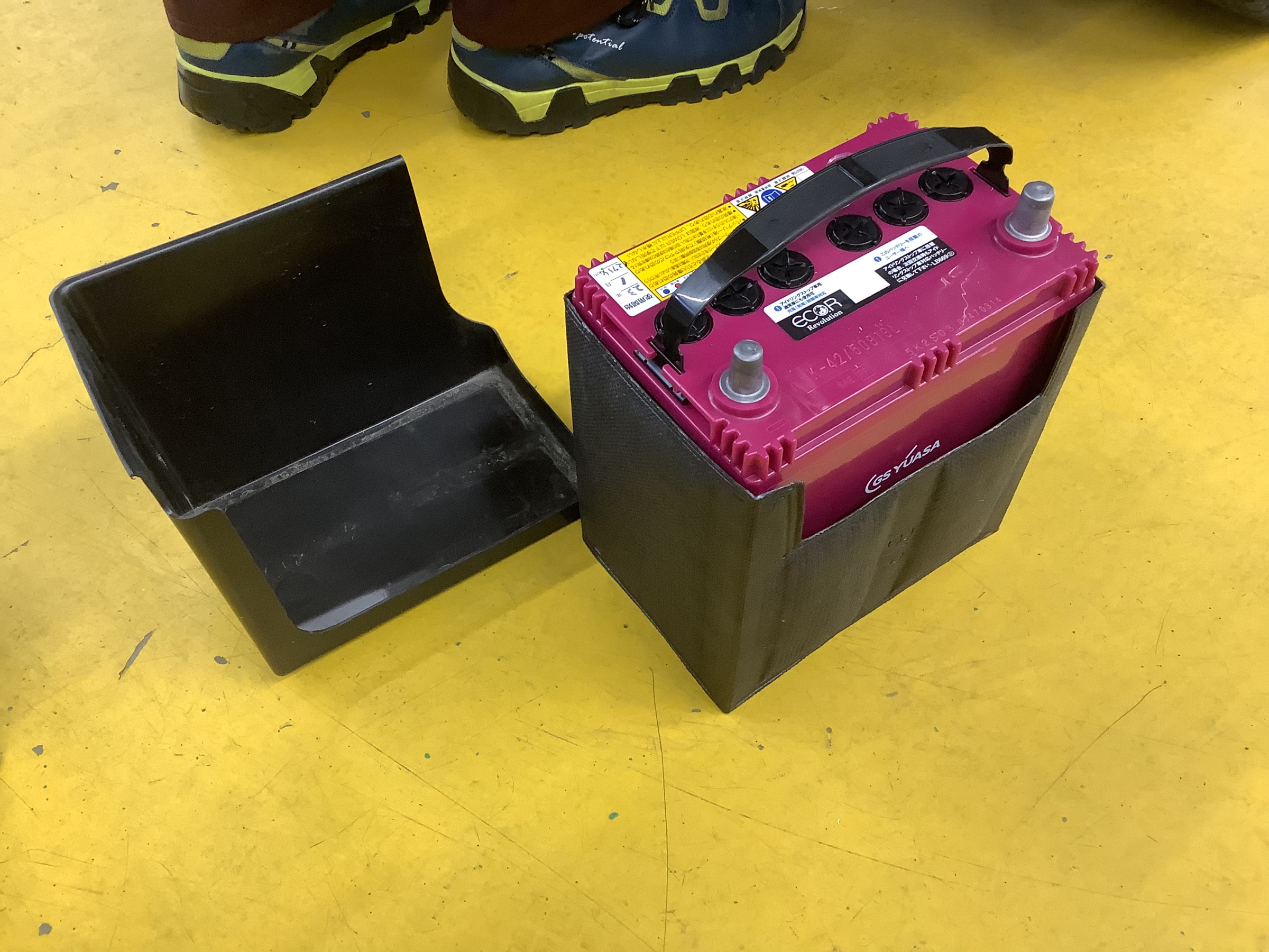 この車両はバッテリーカバーがついてありますので忘れないように注意します。