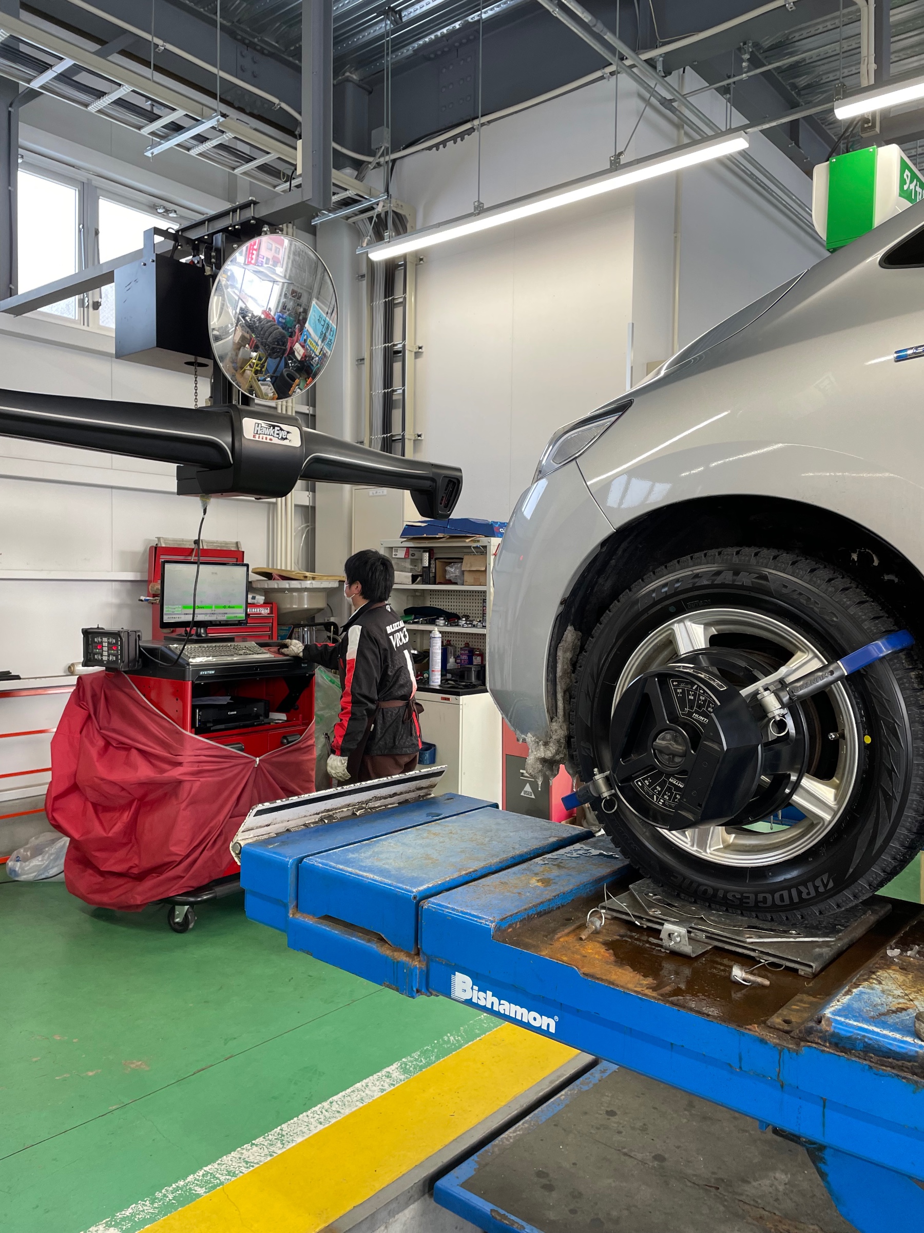 フロントトーは基準値内でしたので測定のみの作業でした。