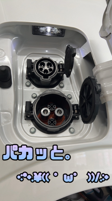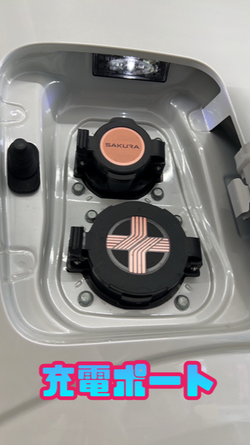 サクラというクルマを実際に初めてみたので給油口ならぬ充電口が
