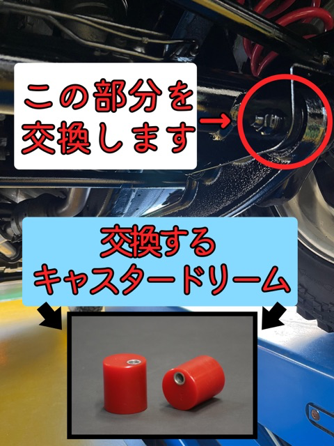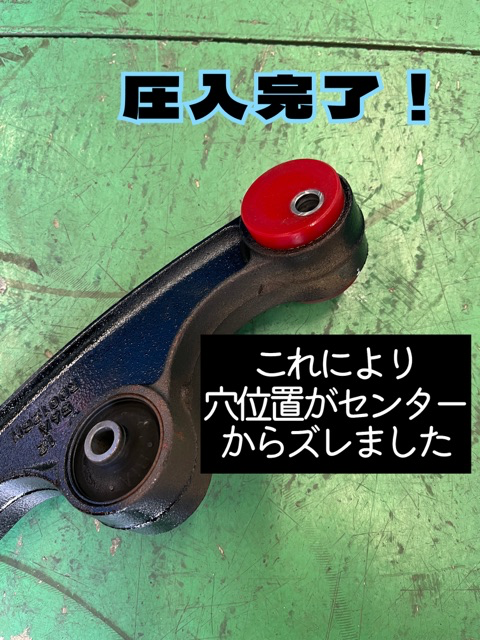 フロントのアームを車両から外し、こちらのブッシュを交換します。